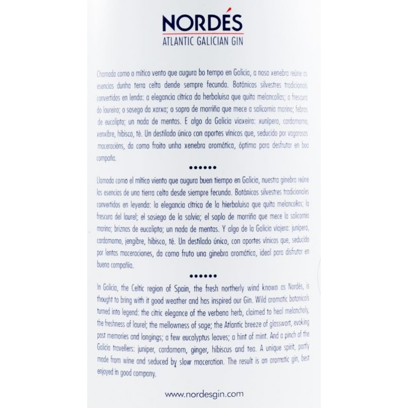 O gin Nordés define-se como um “Atlantic Galician Gin”, ou seja, um gin da Galícia em espanha com forte influencia do Atlântico. O gin Nordés usa na sua composição, para além de cerca de 15 botânicos tradicionais, uma uva bem conhecida dos portugueses: a uva alvarinho. É exatamente o uso dessa uva exclusiva de Portugal e Espanha que dá o carácter diferenciado ao gin Nordés. Para além da originalidade do sabor, Nordés apresenta-se em uma garrafa com um design bastante atrativo, com o mapa mundi na frente e com a região da Galícia em destaque.