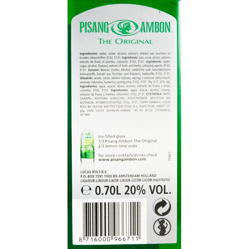 Pisang Ambom é um licor de bananas verdes, de baixo teor alcoólico, com uma fascinante cor verde, elaborado com base numa complexa e excitante mistura de frutos e ervas exóticas. Aroma frutado. Sabor doce, fácil e acessível. Consome-se normalmente em long drinks, com sumo de laranja ou outros soft drinks ou em cocktails. Sua receita é baseada em uma receita de um licor antigo da Indonesia. "Pisang" significa banana na lingua indonésia e Abon é uma ilha também na Indonesia que foi, no passado, uma colonia alemã, pais onde a bebida é fabricada.