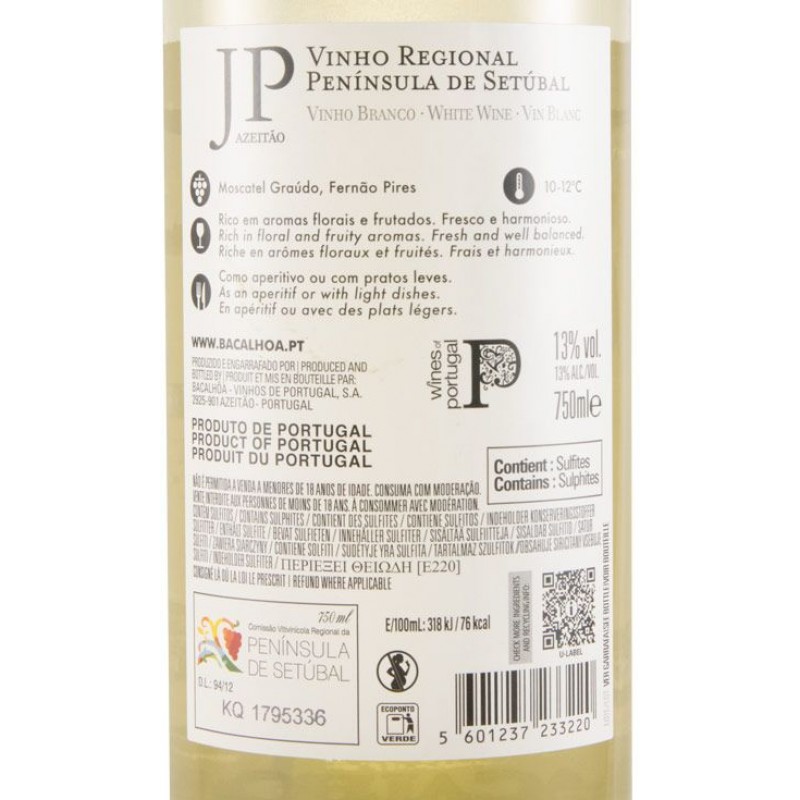 De cor citrina, o JP Azeitão Branco apresenta-se com um aroma muito floral e frutado, com notas de flor de laranjeira, ananás e citrinos.