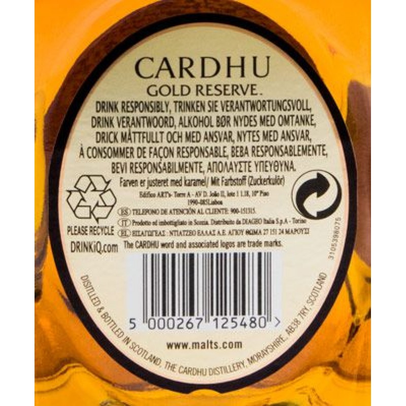 Cardhu Special Gold Reserve apresenta uma cor dourada rica, com um nariz maduro relativo a fruta. Boas notas maduras juntam-se as notas de especiarias e frutos tropicais: nectarina muito madura, melão, abacaxi, manga, pêssego e maracujá. A interacção entre o seco e doce continua: cedro, chocolate e noz-moscada. Encorpado, este uísque é suave e generoso, com um aperto muito leve e somente uma insinuação da turfa. Ainda equilibrado: limão, maracujá que jogam contra baunilha e noz. Final anelado e limpo, com notas de maracujá e insinuações de fumo.