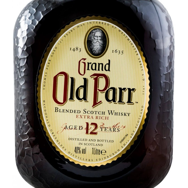 Nascido em 1483, Thomas Parr viveu 152 anos na Grã-Bretanha. Em 1871, os irmãos James e Samuel Greenles criaram o Grand Old Parr, em homenagem ao legendário Thomas Parr. E diz a lenda que o espírito de longevidade deste incrível homem está em cada dose de Old Parr. Envelhecido por 12 anos, o principal malte de composição é o Cragganmore, o mais famoso malte de Speyside, região onde nasceu o scotch whisky.